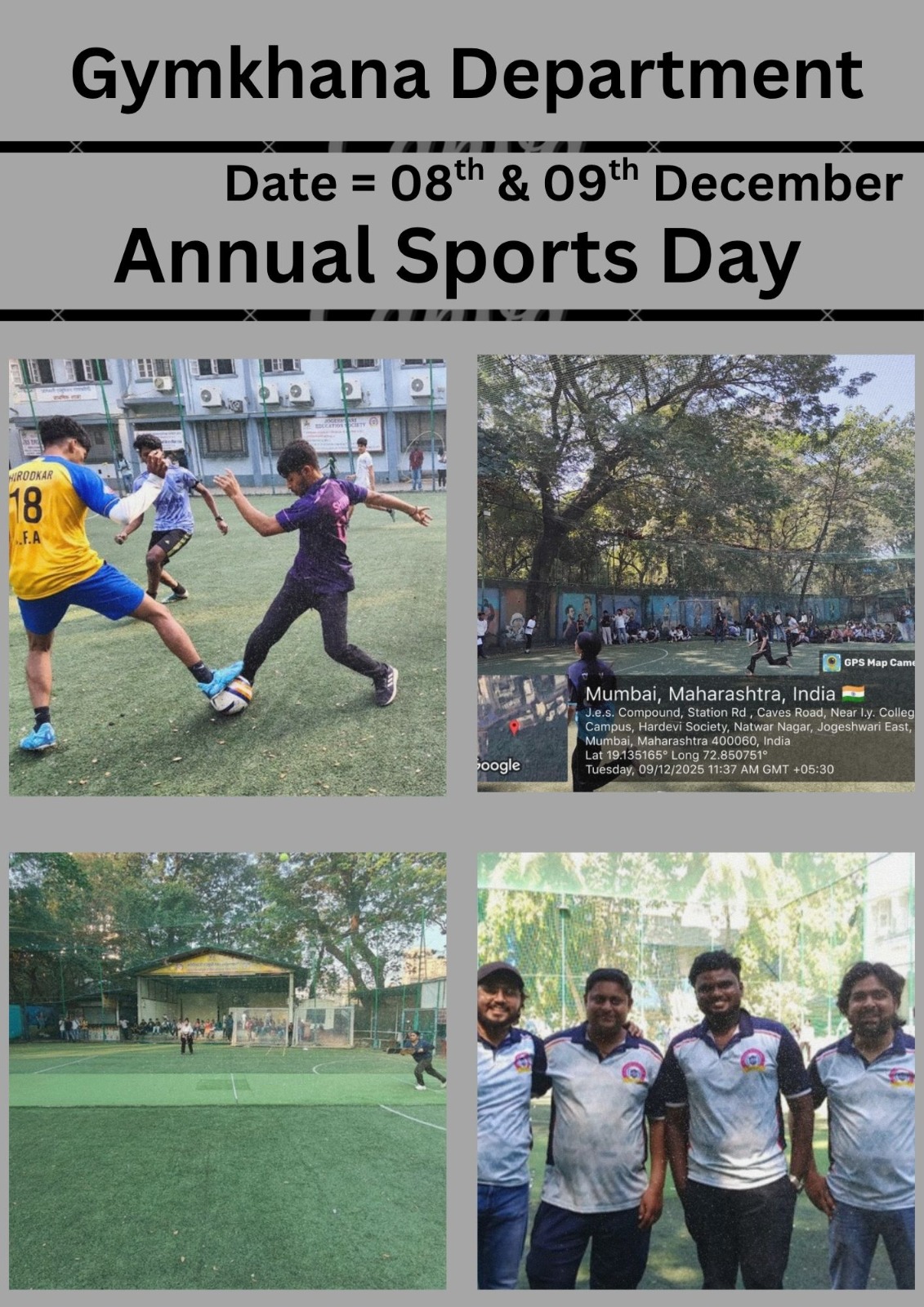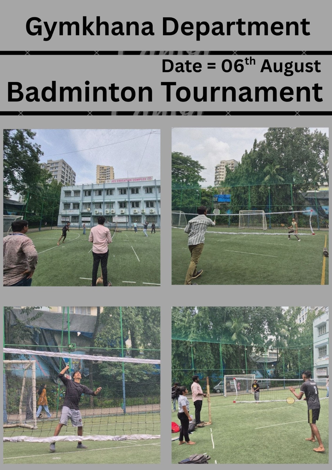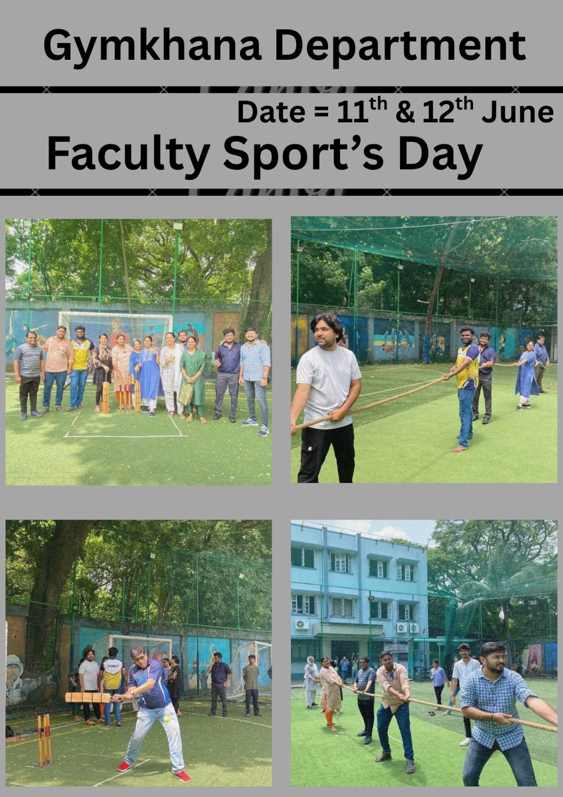 The Gymkhana aims at the overall development of the students through its various sports programmes and calculates their discipline, team spirit, teamwork, cooperation, sportsmanship and tolerance.